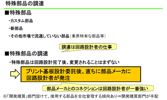 いい?汎用部品の調達はそんなに焦らなくてもまだ間に合うから。それよりも、ギリギリまで定数の追い込みをして回路品質を高める努力をしなさい!もちろん、汎用部品の在庫切れっていう事態もあるかもしれないから調達期間とあわせて在庫確認はしておいて欲しいけどね。」