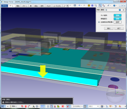 まず、部品内蔵基板において「3次元(内層)に部品をレイアウトできる」ということは、表裏以外の層に部品の配置や、部品の逃げ(キャビティ)が設定でき、かつそれぞれのチェックもできることを指します。もちろん見え方も重要で、透過性も配慮する必要があります。Design Forceではもちろんこれらを考慮して、3Dグラフィックスを採用し、かつ透過表示も行えます。
