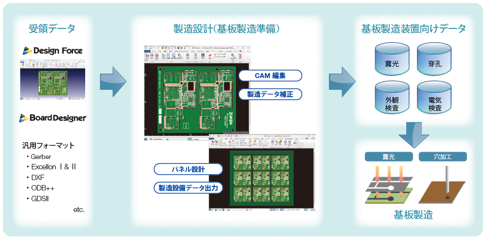 DFM検証、基板製造準備、部品実装準備などのトータルCAMソリューション