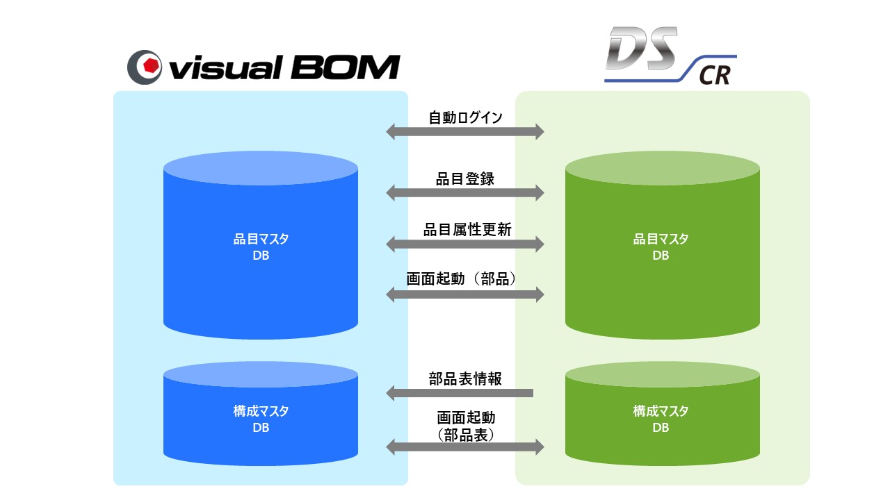 エレクトロニクス製品開発の特性にフォーカスした EDM(エンジニアリングデータマネジメント)システムである図研の DS-CR との連携機能を標準で搭載しており、両システムの品目・構成マスタを連携可能です。品目や属性情報の即時同期をはじめとした各種機能により、電気設計・機構設計間のシームレスな情報流通を実現します。